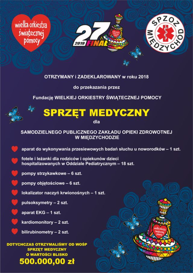 Miniony rok był rekordowy pod względem ilości otrzymanego oraz zadeklarowanego do przekazania na rzecz naszego Oddziału Pediatrycznego oraz Ginekologiczno-Położniczo-Neonatologicznego wraz z Blokiem Porodowym sprzętu medycznego.